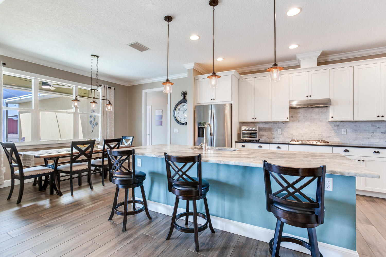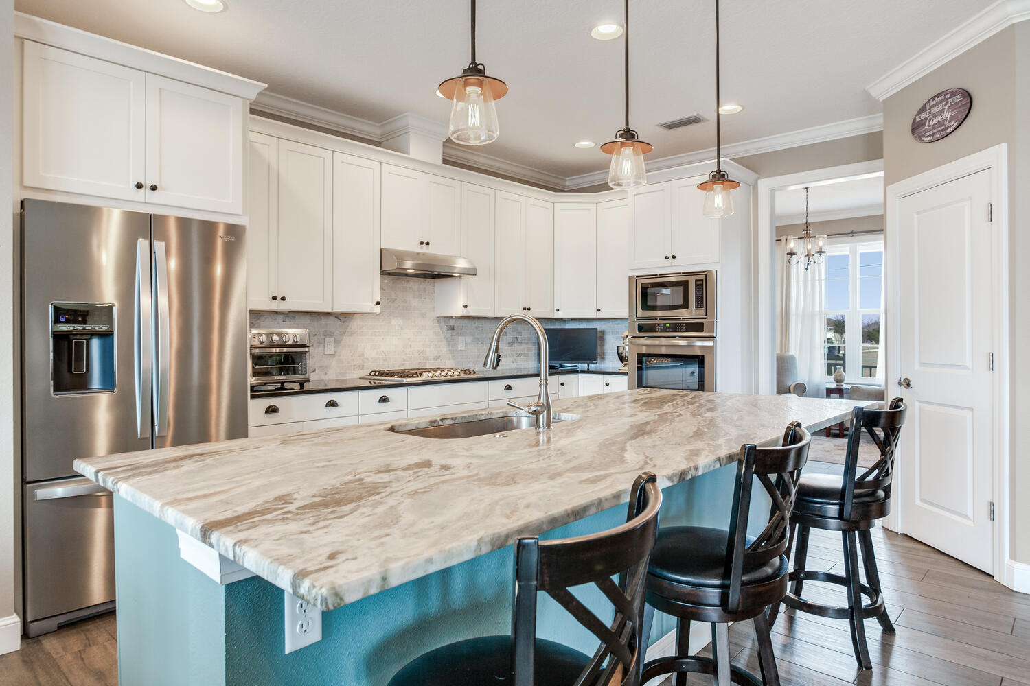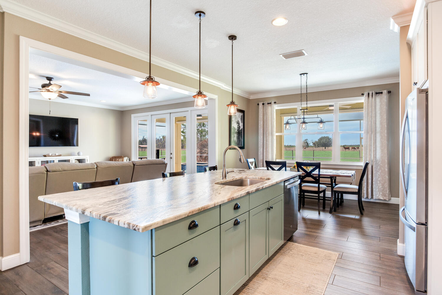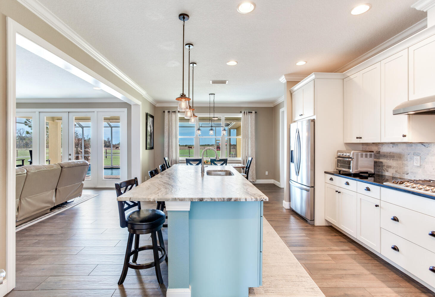 Step onto the welcoming front porch and feel the warmth of Southern hospitality in this custom-built 2017 home, perfectly situated on 18+ acres of pristine, fenced pasture. This 2,412 SF residence features 3 spacious bedrooms plus a versatile office that could serve as a fourth bedroom, 2 full bathrooms, and 1 half bath in a thoughtful split floor plan designed for comfort, privacy, and everyday living. The gourmet kitchen is a showstopper, complete with granite countertops, a leathered granite oversized island, and plenty of room for entertaining or casual family meals.